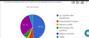 Sipas qytetarëve, problemi më i madh në Komunën e Likovës mbetet infrastruktura themelore, veçanërisht uji i pijshëm dhe kanalizimet (49,2%).