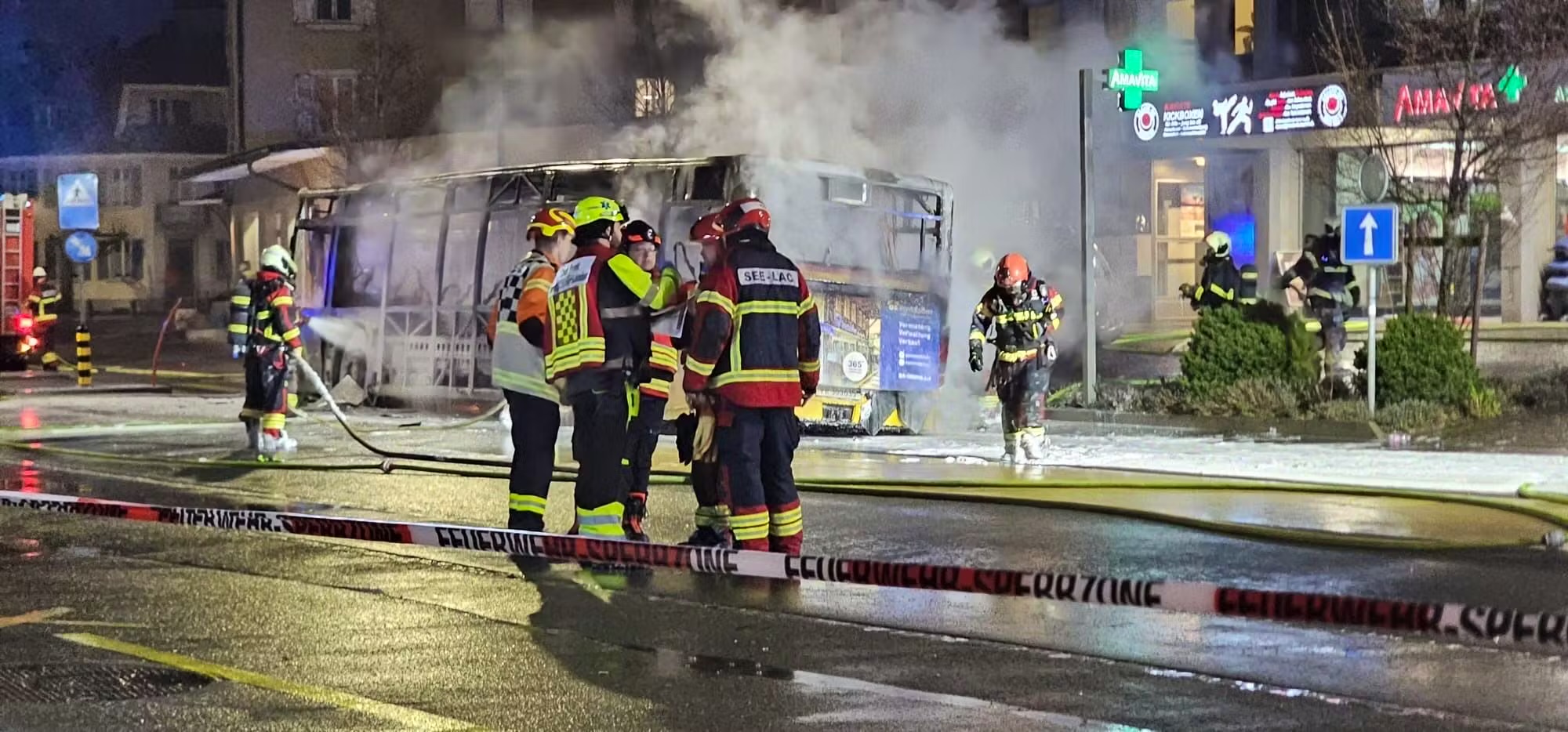 Një video e siguruar nga kjo redaksi tregon skena pak pasi shpërtheu zjarri. Një person shihet duke vrapuar dhe duke bërtitur, ndërsa duket se ka djegie në duar. Në sfond dëgjohen britma dhimbjeje. Media 20 Minuten ka vendosur të mos e publikojë videon dhe në vend të saj të tregojë vetëm disa pamje (screenshots) nga ajo.